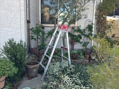 20年弱我流でお手入れをしていた金木犀を剪定していただきました。木の内側がメデューサの頭のように入り組んでしまっていたので、一から形を作り直していきましょうと、バッサリ切っていただきました。最近は毎年鳩が巣作りしようとくるようになっていたので、助かりました。トラックの荷台一杯の枝を持ち帰っていただいたのに、追加料金もなく、最初の提示価格で行っていただきありがとうございました。また来年もよろしくお願いいたします。