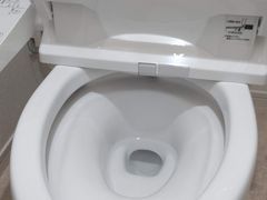 →便器、ウォシュレット、床、タンク、換気扇、ペーパーホルダー、換気扇、棚