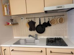 キッチン:シンク / ガス台(ガステーブル) / ガスコンロ / IHクッキングヒーター/ 戸棚表面 / 照明 / 蛇口 / 壁面 / 窓 / グリル / 排水口