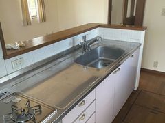 キッチン:シンク / ガス台(ガステーブル) / ガスコンロ / IHクッキングヒーター/ 戸棚 / 照明 / 蛇口 / 壁面 / グリル / 排水口