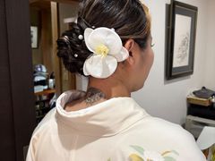時間的に厳しかったところ、無理をお聞き届けくださいました。結果的には時間にゆとりをもって出かけられました。 ヘア担当の方に事前に髪型のイメージをお伝えしたら、そのとおりにしていただけました。 また当日までに、半襟など細やかにご指示いただきました。ですが持っていた襟芯に問題があり、その場で気さくな着付け師の先生が襟芯を提供くださって(お代はお支払しました)、おしゃべりに花を咲かせながら、迅速に着付けてもらえました。今回、ブーツに合わせ、着物と帯を決めましたが、裾丈に加え、靴下の長さまで細かく見ていただけました。訪問着と袋帯の組み合わせも褒めてくださり、嬉しかったです。 おかげさまでパーティーでは写真を一緒にと言われたり、後から凛とした着物姿との感想を頂戴したり、パーティー後の食事会でもお褒めいただいたりしました。 雨の日でしたが、ヘアも着物も帰るまでまったく崩れず楽で言うことなしです。ありがとうございました!