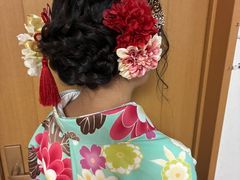 昨日は早朝よりありがとうございました。 最初から最後までとても丁寧にご対応いただき、安心してお任せすることができました。ヘアセットは希望のイメージ通りで、髪飾りのバランスも「正面から見て綺麗に映るように」と調整してくださったおかげで、写真写りもバッチリでした。 メイクも自分ではできないプロの技で、華やかながらも決して派手すぎない絶妙な仕上がりに感動いたしました。着付けも大変お上手で、特に帯結びが素晴らしく、後ろ姿まで自信を持って撮影に臨めました。 一日中、着崩れすることもなく、おかげさまで素敵な思い出を残すことができました。心より感謝申し上げます。ぜひまた大切な機会にお願いできれば幸いです。