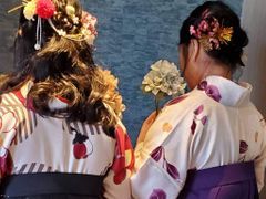 日舞の発表会で姉妹で利用させて頂きました。 苦しくない、着崩れしない、ヘアセット+メイクが素敵すぎると三拍子そろって、お財布にもやさしいと大満足でした。 1週間前に別のお店で、発表会前最終お稽古にと着付けしてもらいました。高学年の長女の言葉そのままですが、「前のと全然違う!全然苦しくない。プロ、本物やな。」と。高学年の長女で7時間、未就学児の次女で5時間着崩れることなく過ごせました。その間、トイレに三度ほど行っています。発表会後、イルミネーションにテンションが上がりスニーカーで走っていましたが、それでも目立った着崩れはありませんでした。 髪の長さが肩までしかなく、多分無理だろうと思いながら頼んだ桃割れ風も完璧に仕上げて頂きました。髪飾りもお貸し頂け大変助かりました。 また機会があれば利用させてもらいたいです。今回は本当にありがとうございました。