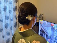 お宮参りで着付けとヘアセットをお願いしました。 肩上のボブでダウンスタイル一択かと思っていましたが、素敵にアップにしていただき、髪飾りも松井さんのセンスでパパッとつけてくださり、大変満足です! 着物もタクシー移動がありましたが、最後まで着崩れすることなく無事終えることができました。 着付けとヘアセットどちらも家族に大好評で、松井さんにお願いして本当に良かったです!また着物を着る機会があれば、お願いしたいなと思っています!