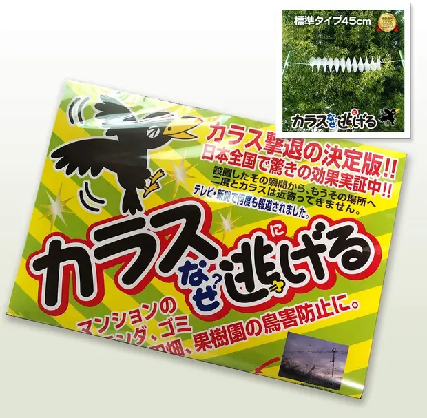 カラスの生理を研究し尽くして編み出された、光を乱反射させた新しいタイプのカラス撃退用具です。