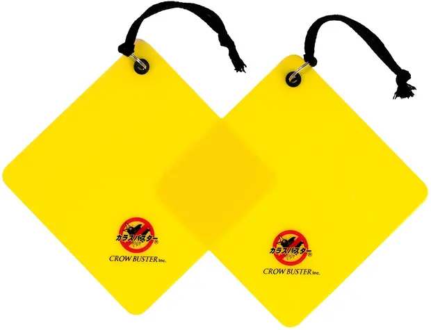 黄色いプレートがカラスの目を刺激し、吊るすだけでカラスが寄り付かなくなるアイテムです。