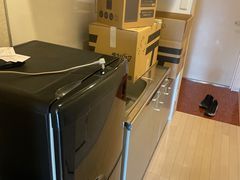 極小ベランダへの洗濯機運び。水道蛇口の追加部品(数千円)がいる築古物件でしたが、気持ちよく対応してもらい本当に助かりました!「コンロもあるんですか?」という確認もあったんですが、それもサクサク運んでくれて感謝しかありません♪