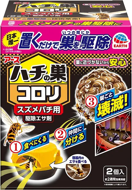 エサを食べた蜂が巣に戻り、同じ巣の他の蜂も駆除できるので、女王バチが巣作りを始める時期などに置けば、働きバチが増えるのを予防できるでしょう。