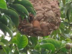 早朝の雨戸開けの際に、庭にある大きく育ってしまったクレストの中から蜂が出入りしているのを発見。外から蜂の巣は見えず、こういう時はどうしたら…と思い検索にあったくらしのマーケットから近くにあるこちらのお店にたどり着きました。 予約依頼をした所、早朝にも関わらず直ぐに返信をいただけ、当日近くで作業があるとの事で、終わり次第来ていただける事になりました。 問題の木を確認した所、やはり足長蜂の巣があり、迅速に巣の撤去、また蜂よけを施していただき、庭の他の木や植え込みも点検をしてくださいました。 来ていただいたおかげで安心出来ました。暑い中ありがとうございました。 蜂の巣は大きくなるものなので、疑わしい時はこちらのお店に直ぐに連絡をされるといいと思います。お勧めいたします!
