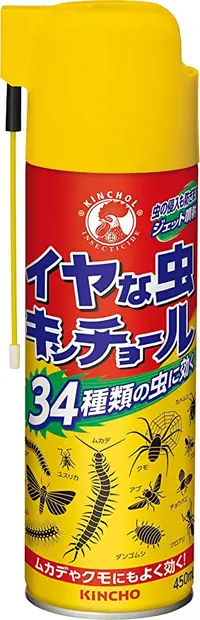 KINCHOのイヤな虫キンチョールも、ピレスロイド系の有効成分を含む商品。直接噴射で撃退するだけでなく、通り道に予めスプレーしておけば害虫の侵入を防ぎます。