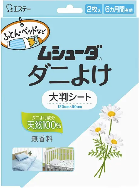 ダニが発生しやすい布団の下や枕カバー・クッションの中などに使える天然成分100%のダニよけシートです。効果は約6ヶ月続きます。