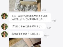 終始懇切丁寧にしていただき安心してお取引ができました!とても感謝しております。細かい行き届いた清掃や掃除前・掃除後の写真も送ってくださり、また入室前入室後の連絡もしっかりいただきました。次回もまたぜひ利用したいです。
