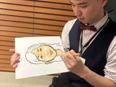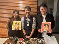 会社忘年会に来ていただきました。60名の参加者のうち抽選で6名を選び、1時間での契約をお願いしました。結論、最高に盛り上がりましたし似顔絵をゲットした6人も大満足の笑顔でした。また是非お願いしたいと思います。ありがとうございました。