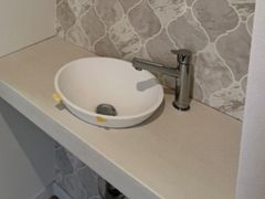 すぐにお返事をくださり、色々相談にのって頂きました。ありがとうございました。 ボウルと吐水口が近く手が洗いづらかったのと、アクセントクロスや照明と雰囲気を合わせたかったので、ネットで購入した水栓に付け替えていただきました! 水はねも考慮していただきましたが、教えていただいた止水栓での水量調整で問題ありませんでした! 大満足です! 作業時間も短く、また飼い犬にも優しくしていただきありがとうございました。 また何かあればお願いしたいと思います。