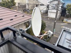 お椀型の衛星放送用アンテナで、南南西向きに設置する必要があります。ベランダや屋根上に設置できます。