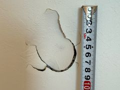 息子の成長の過程でできてしまった、3か所の壁の穴。最大20cm超の大穴(泣)もあり「元通りは難しいだろう」と諦めかけていましたが、お越しいただいたプロの技術者の手で、その不安は大きな感動に変わりました。 古い壁紙だと色の差が心配ですが、今回は元の壁紙をそのまま活かして修復する驚きの技術で、3か所すべて完璧に対応いただけました。(※状態により可否があるそうですが、今回は見事に活かしてくださいました!) 当日は非常に丁寧な仕事人としての佇まいが印象的で、作業後の壁を見た瞬間は「あれ、穴はどこでしたっけ……?」と思わず身を乗り出して目をこらしたほどです。 写真の通り、あんなに生々しかった穴が今では跡形もありません。まさに「修復のスペシャリスト」による芸術的な仕上がりに圧倒されました。家を再生していただき、本当にありがとうございました!