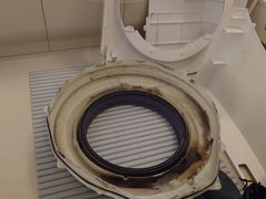 乾燥機能が落ちてきたことをきっかけに、分解クリーニングをお願いしました。 作業中に、自分では気づいていなかった洗濯槽フロントカバーのひび割れを発見していただき、その場で部品交換まで対応してくださいました。カバーには三日月状の穴が開いており、それが水の出が悪くなっていた原因だったとのこと。言われるまで全く気づいておらず、この故障によりさらに悪い故障が怒る可能性もあるとのことで、発見・修理していただけて本当に助かりました。 また、運転音からベルトの交換時期の目安を教えていただき、修理するかどうかの判断を丁寧に委ねてくれました。無理な押し売りは一切なく、こちらの意思を尊重してくださる姿勢がとても好印象でした。 肝心の乾燥機能の低下については、ヒートポンプ部分の洗浄で見事に復活。万が一復活しない場合の対処法と費用も、作業前に丁寧に説明していただいていたので、安心してお任せできました。 さらに、機種の特性や使用状況をふまえて「今後交換を検討した方が良い部品」まで教えていただけたので、長く使うための見通しが立てられました。壊れにくいメーカーや製品の特徴にも詳しく、次回購入時の参考にもなりました。 技術力はもちろん、説明の丁寧さ・誠実さが際立つ業者さんです。定期的なメンテナンスもぜひこちらにお願いしたいと思います。ありがとうございました!