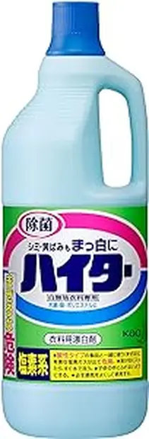 ①〜③の方法で効果がなければ、塩素系漂白剤を使ってみましょう。ただし、柄物の衣服は色落ちするリスクがあるため、注意が必要です。