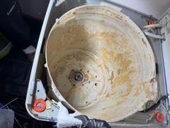 縦型洗濯機クリーニングとは縦型の洗濯機を洗濯槽やホースなどの細かいパーツに分解し、それぞれのパーツの汚れを高圧洗浄機などで徹底洗浄するクリーニングのことです。洗濯機の中や洗濯物から嫌な臭いがしたり、洗濯物に黒い点(黒カビ)がついていたら洗濯槽はもう石鹸カスやカビだらけかもしれません。