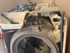日立のドラム洗濯機。 水漏れしていたが、極めて迅速に対応いただいた。 6000円の診断:ドアパッキンの破れによる水漏れとすぐわかった。 ドアパッキン交換は23000円:取り寄せ待ち含む1週間後に再度来訪いただいた。 加えて当日「カタカタ」という異音があった点もご指摘いただき、その場で追加料金の8000円を払ってプロの手仕事にゆだねた(全体をバラしてご確認いただいたら、ドラム内からコインが出てきた。。) 「カタカタ」対応は、裏蓋まで外してクリーニングいただき、配管など全体の汚れも対応いただき、かつ洗濯パンも綺麗にしていただいた。塩素で細かくクリーニング。 ずっと見てしまった。 診断費:6000円+駐車場費 修理とクリーニング:31000円+駐車場費 長丁場の4時間以上ここまで対応いただくとは、いい意味で想定していなかった。 また依頼したいし、ランキングのトップでいらっしゃるだけあったと確信している。 ちゃんとプロに依頼すべき。
