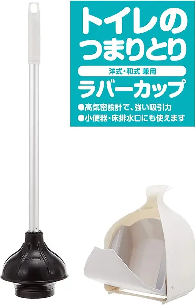 洋式・和式兼用タイプです。ホワイトの収納ケース付きで、どんなトイレにも馴染むデザインです。強力な吸引力でトイレのつまりを解消することができます。