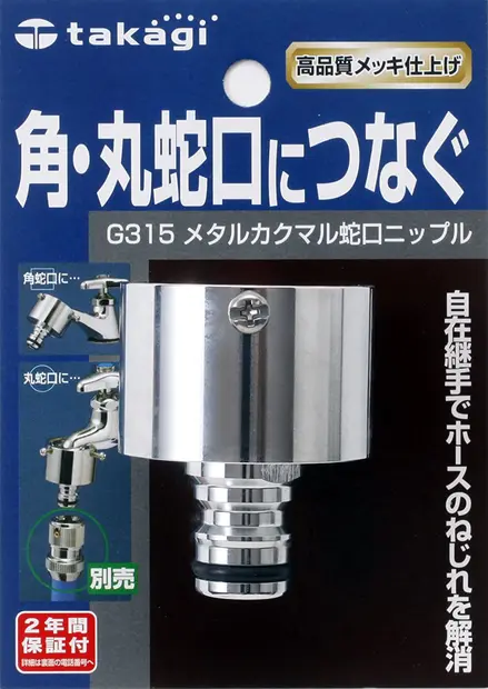 水栓と給水ホースを接続するための、4つねじ式の部品。蛇口の形状が多くの家庭で使われているシンプルな「万能ホーム水栓」のときに必要。