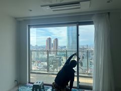 窓ガラスフィルムはお客様が用意 / 養生 / 作業前の窓ガラス簡易清掃 / フィルム貼り